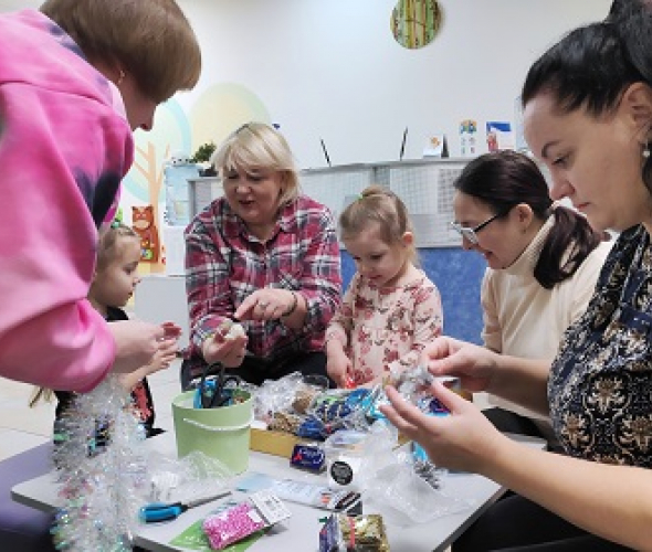 Подготовились к Новому году на мастер-классе для семей, который провели в рамках Всероссийской благотворительной акции "Щедрый вторник", — сделали вместе новогодние елочные игрушки.
