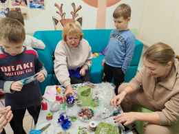 Подготовились к Новому году на мастер-классе для семей, который провели в рамках Всероссийской благотворительной акции "Щедрый вторник", — сделали вместе новогодние елочные игрушки.